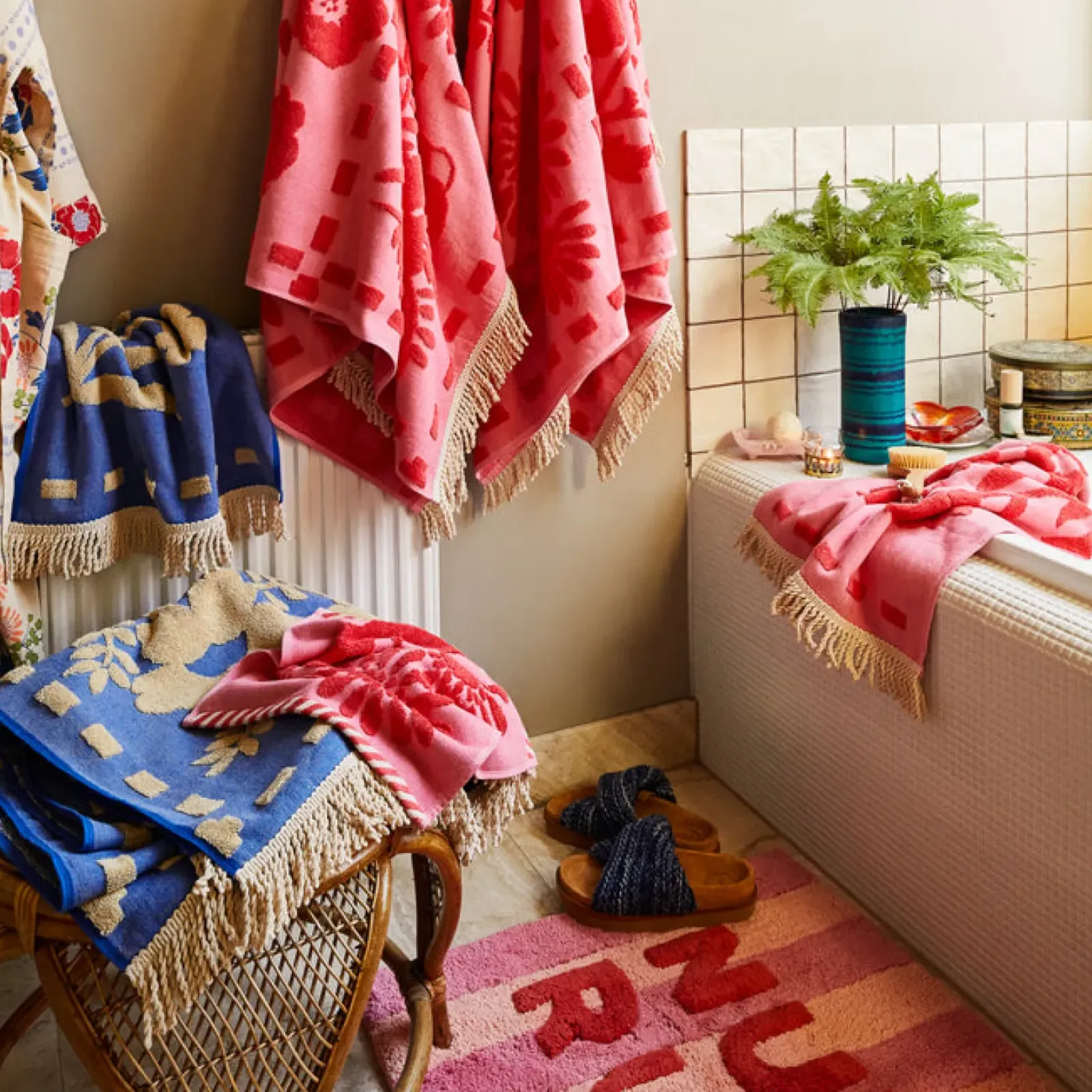 “Our ever-iconic ‘Nudie Rudie’ slogan gets a refresh in the Ira bath mat. A timeless stripe is transformed with sunset tones. This practical and playful design is made to bring a smile to your face every time you step into the bathroom, kickstarting your day with a dose of cheer.” – Phoebe’s Style Notes
