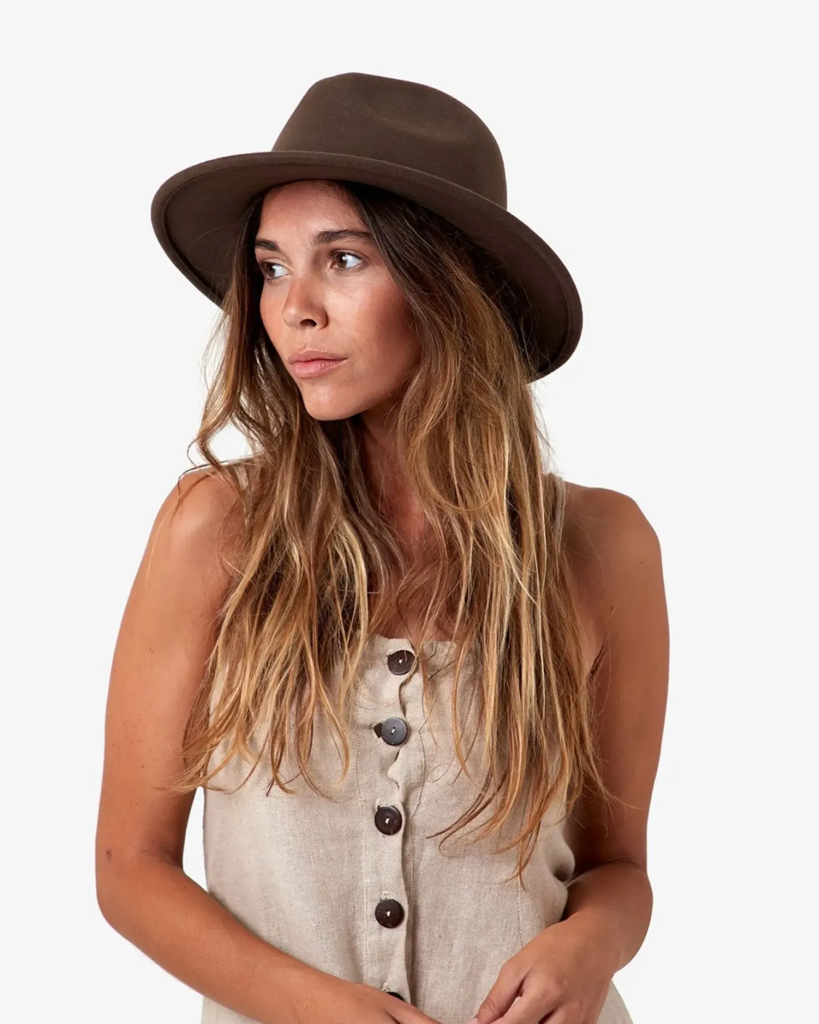 Wide brim Fedora made for Men and Women. Handmade from soft Australian wool, finished with all natural details.
