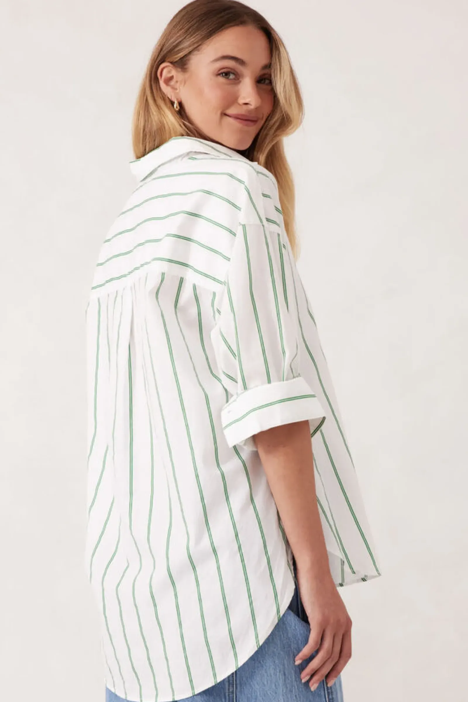 Women Ceres Life Oversized Poplin Shirt- Grass Fine Twin Stripe