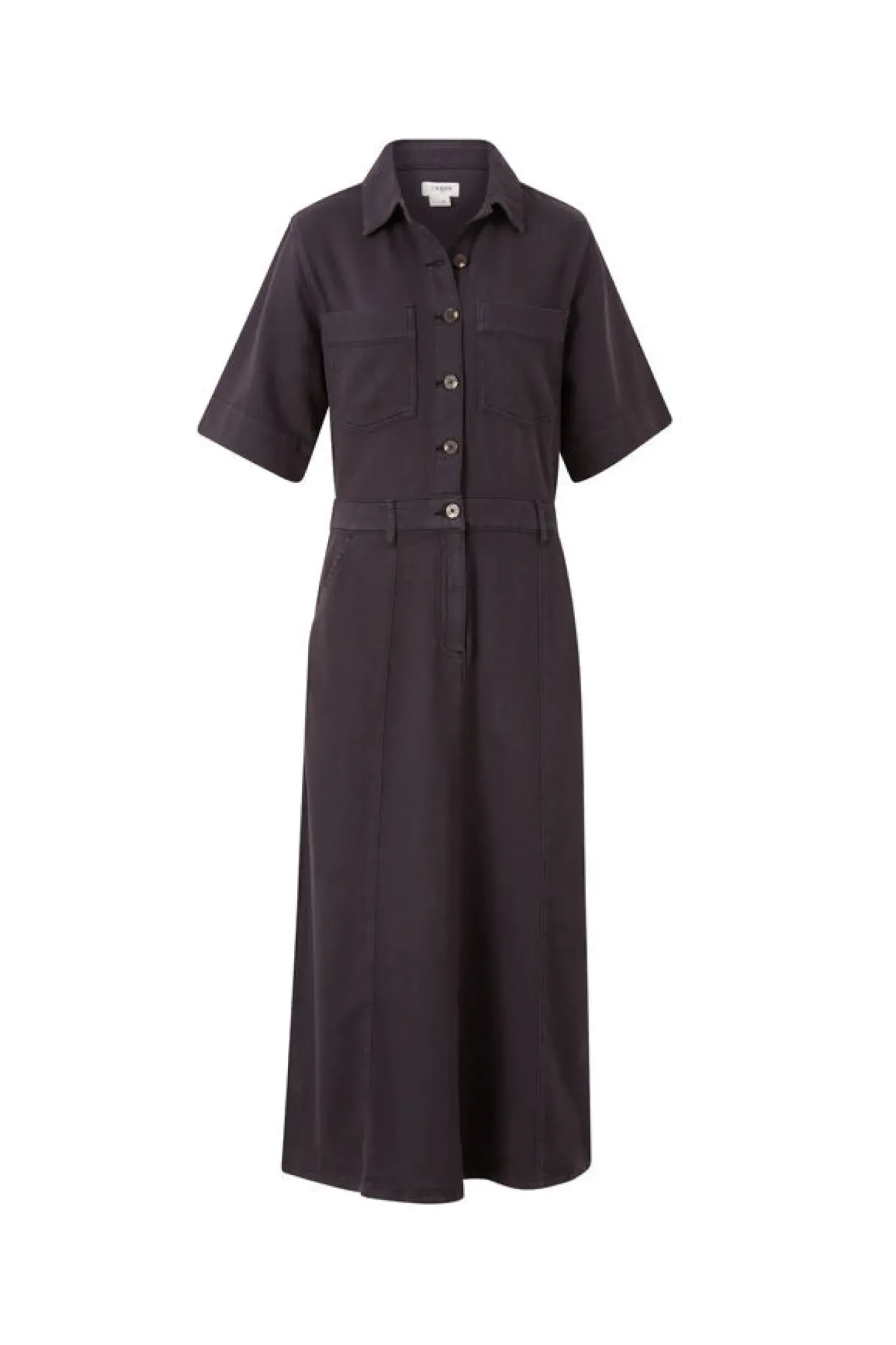 Step into effortless style with our Short Sleeve Flared Midi Shirt Dress. Crafted from lightweight twill with a soft drape, this dress is the epitome of comfort and chic. Made from 100% Organic Cotton, it features an ankle-length flared silhouette, functional button and zipper closure, plus an elasticated back waist for all-day ease. Perfect for those fashionably lazy days when you want to look amazing without trying too hard.