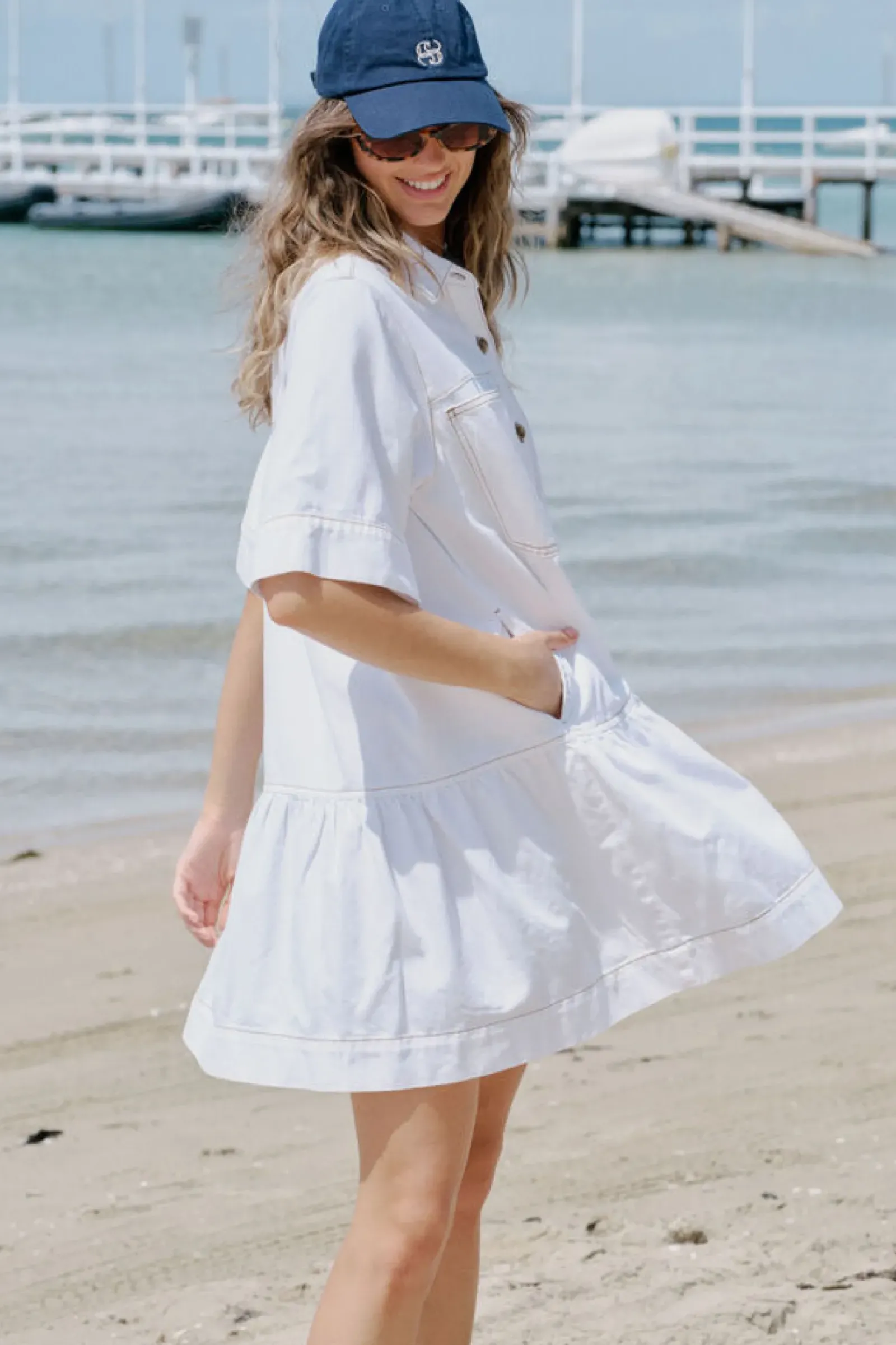 The Short Sleeve Tiered Pocket Shirt Dress is all about effortless charm. Made from midweight twill with 30% Tencel Lyocell with a soft hand feel, this mini-length dress features a functional button placket, a relaxed boxy fit, and a flattering gathered tier. Perfect for those days when you want to look cute with minimal effort!