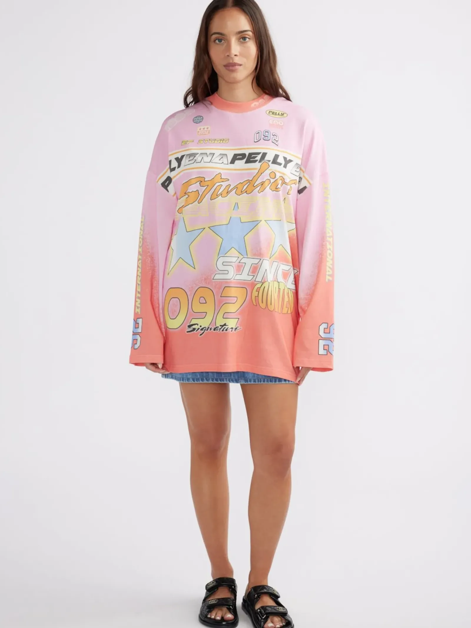 Ena Pelly Moto Long Sleeve Tee Dress – Multi