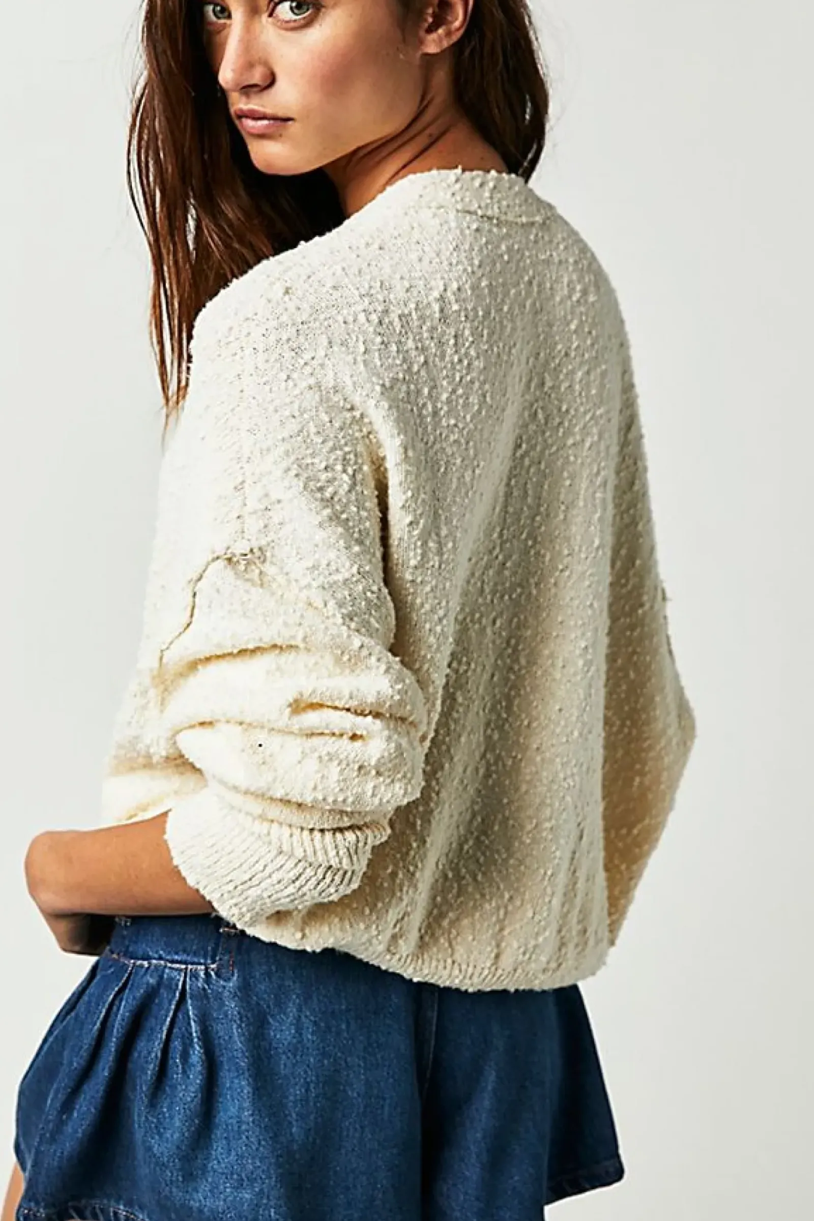 Your new favorite cardigan featured in a soft, textured fabrication and boxy, cropped silhouette with dropped sleeves and exposed seaming for added dimension.