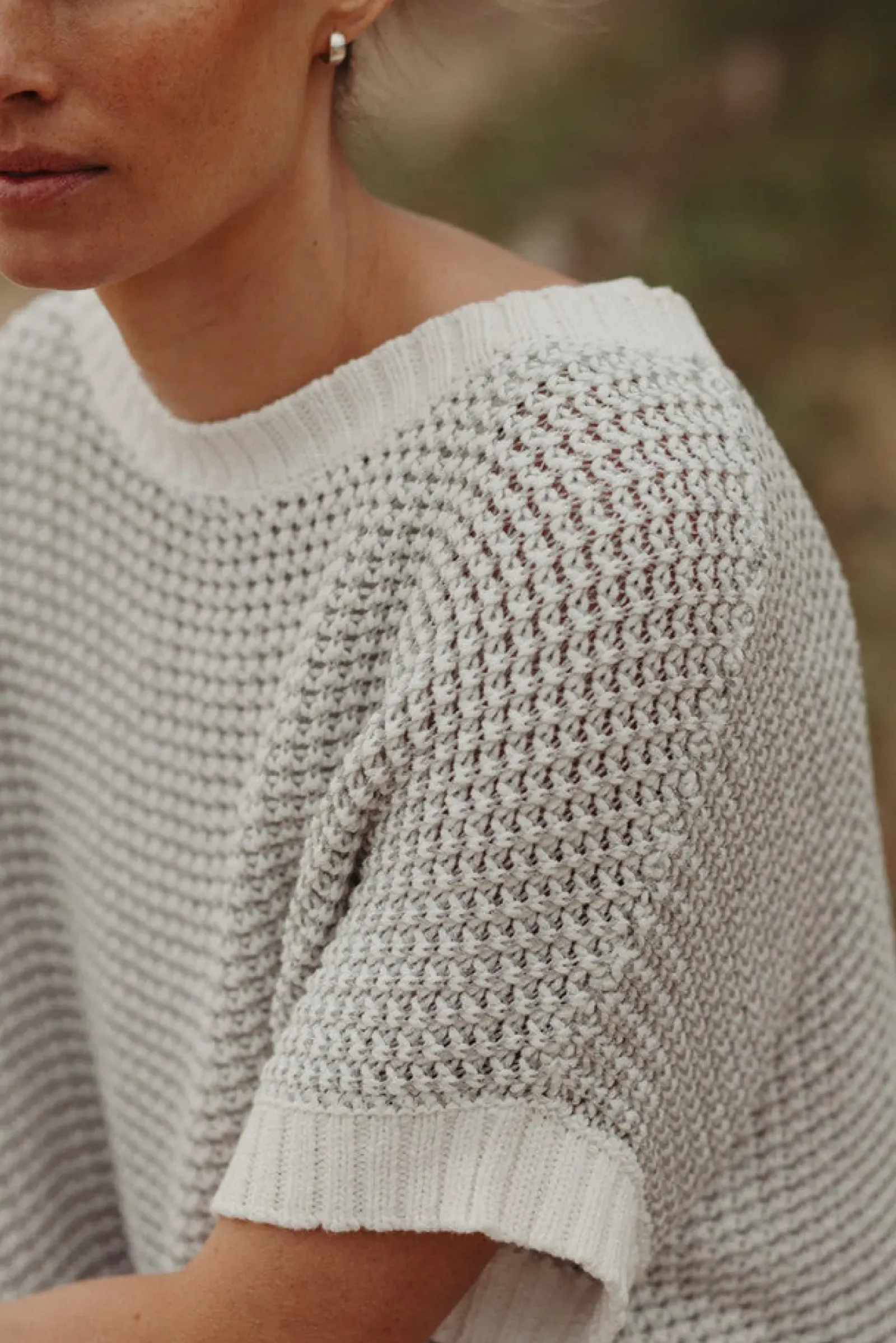 This pullover is a beautiful statement piece. A blend of soft cotton knitted into a tube yarn mixed with Lurex finished with a stunning rib detail. Worn over the shoreline dress or with our retreat pants, it is as comfortable as it is beautiful.