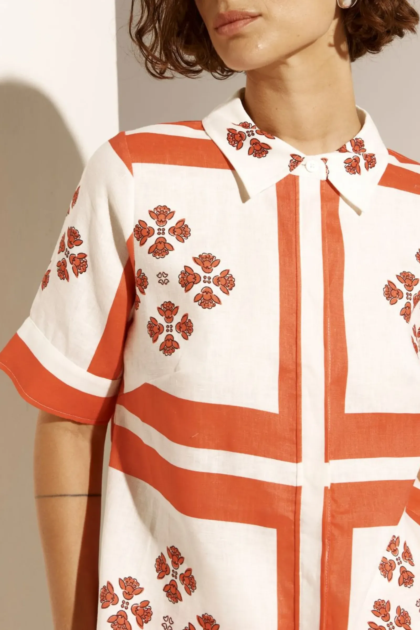 this simple and minimalistic design is the perfect vehicle for punchy on-point prints. a covered placket and classic collar are modern and contemporary features. the boxy silhouette allows these stunning prints to shine.