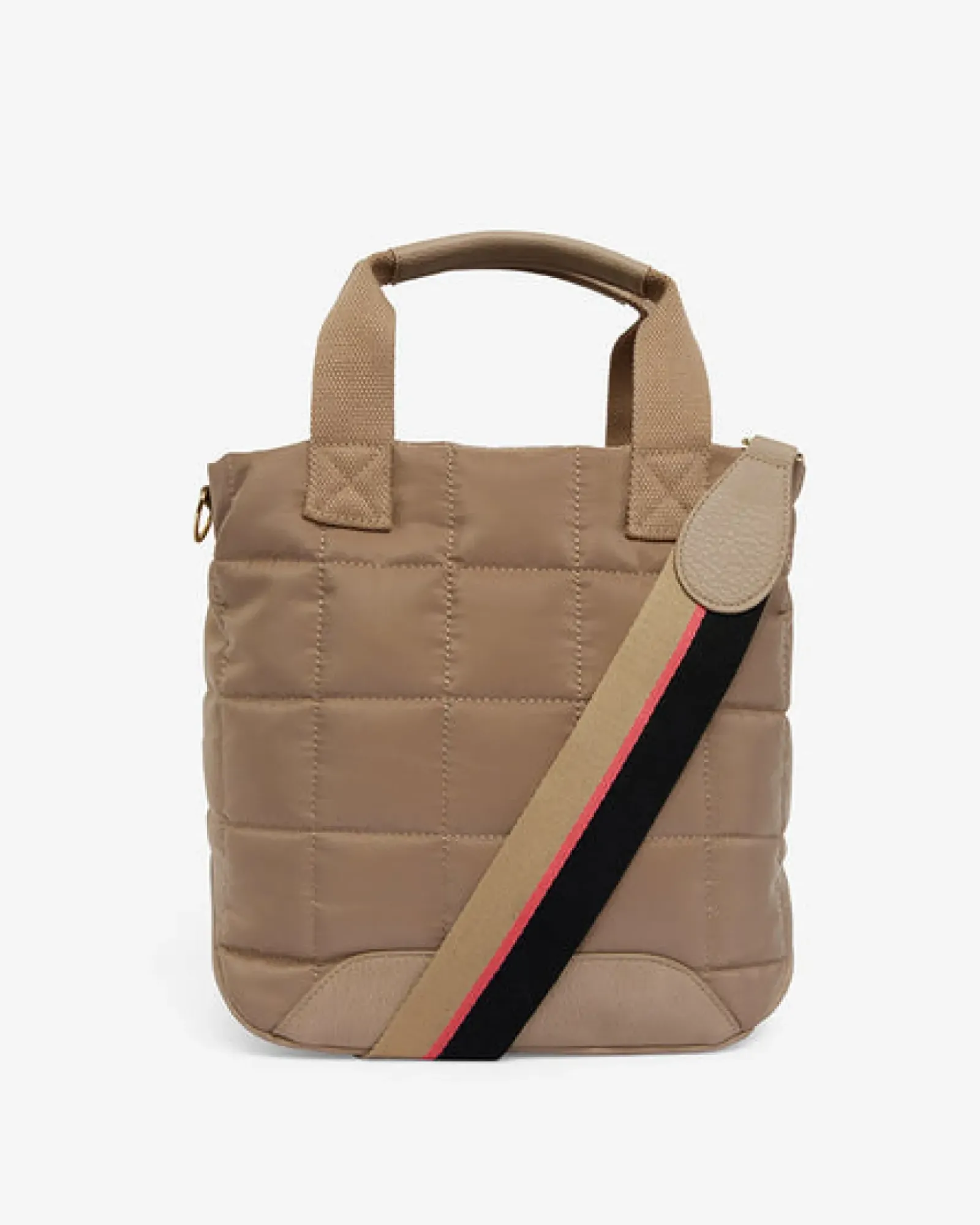 The Elms+King Mini Santa Monica is compact bucket-style tote. With handy tote grip handle, plus a removable crossbody strap, it’s the perfect everyday bag. The tote features a centre buckle closure, and interior detailing to hold all your essentials. Made from premium quilted nylon, the Mini Santa Monica features a bright pop nylon lining.