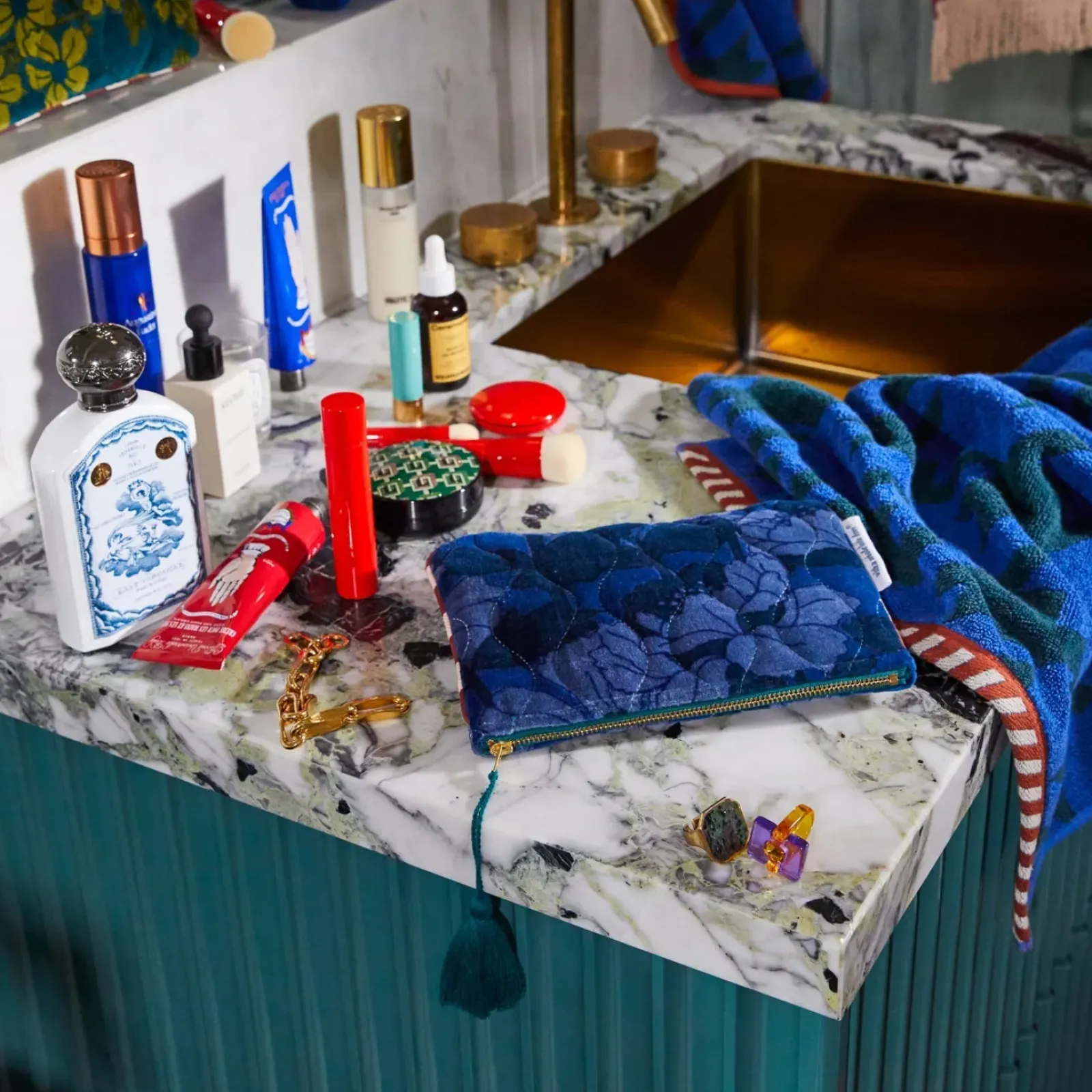 “Taking inspiration from a lush wildflower meadow, this textural pouch is the perfect size for stashing all your bits and bobs on the go. Super-soft velvet, a gorgeous floral motif, striped piping, and the playful tassel and zip closure will have you reaching for your new favourite accessory time and time again.” – Phoebe’s Style Notes