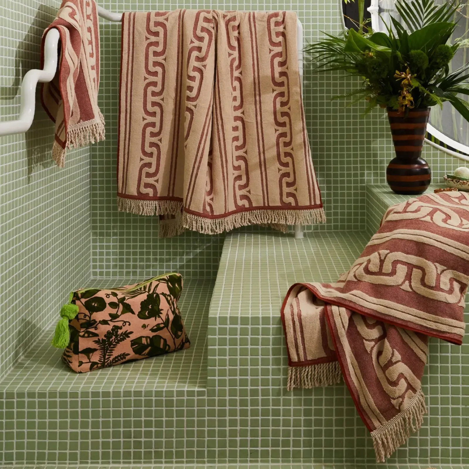 “Escape to exotic destinations with the opulent tropical print of our Safia cosmetic bag. With a design inspired by vintage wallpaper reminiscent of high-end hotels of Singapore in the ’70s, it’s the perfect travel companion. A contrasting top zip and textured pom-pom finish off this pretty and practical carry-all.” – Phoebe’s Style Notes