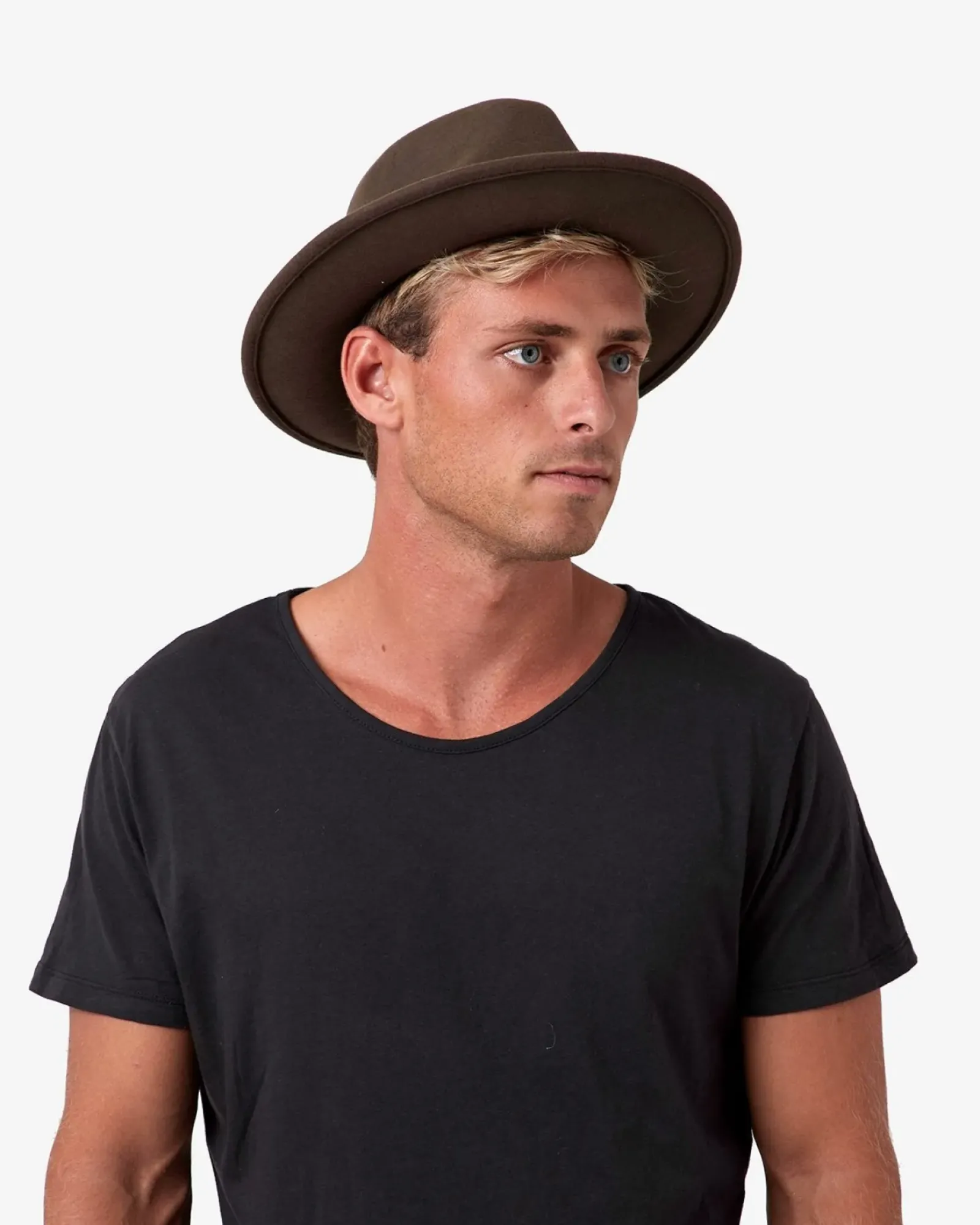 Wide brim Fedora made for Men and Women. Handmade from soft Australian wool, finished with all natural details.