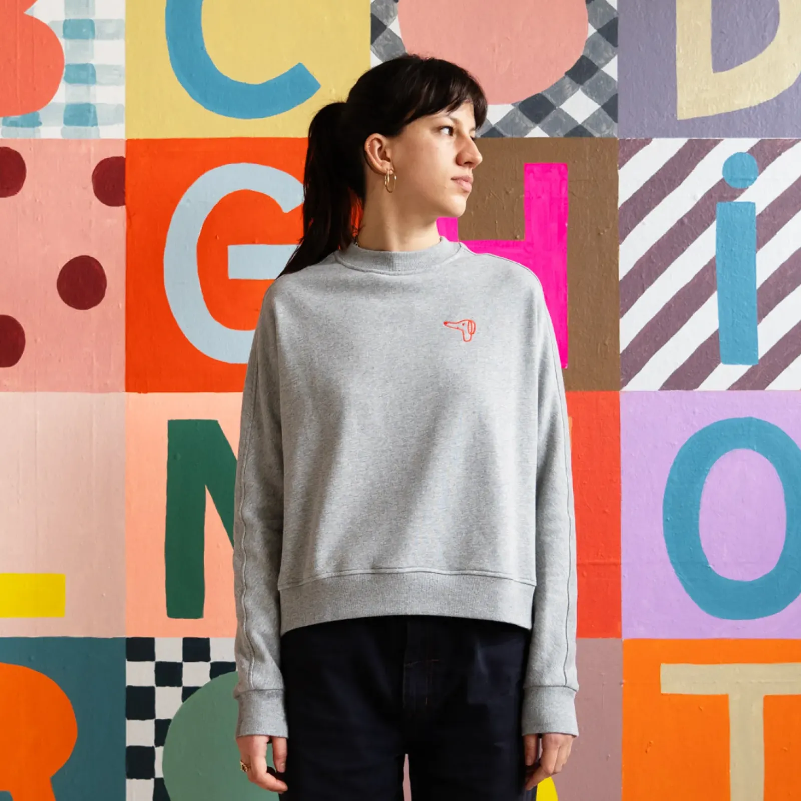 DOGGIE embroidered grey marle cotton fleece boxy fit sweatshirt