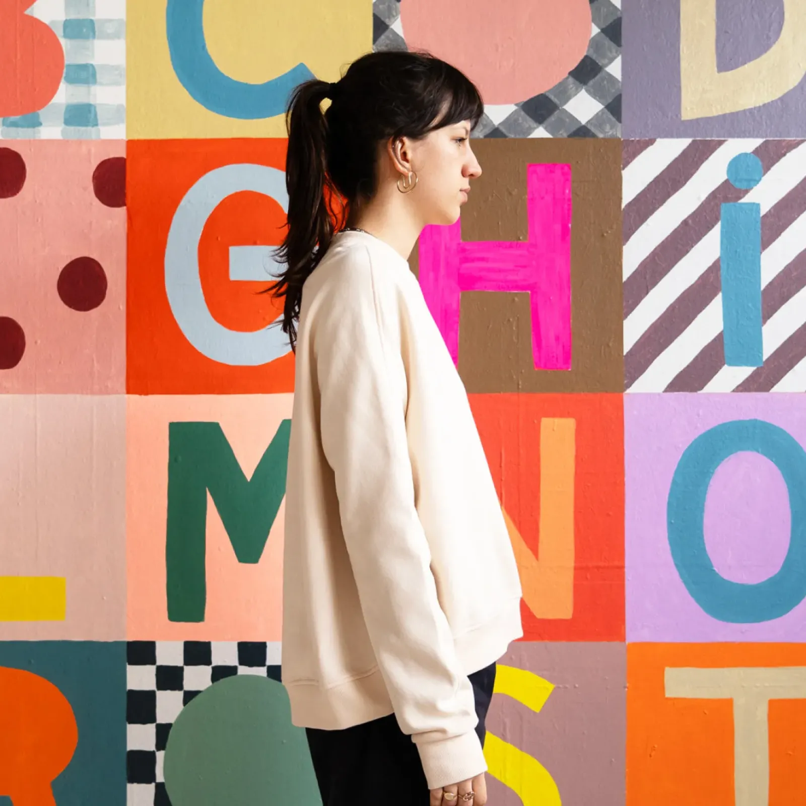 Please note the crop sweater is a looser fit than our regular sweater.