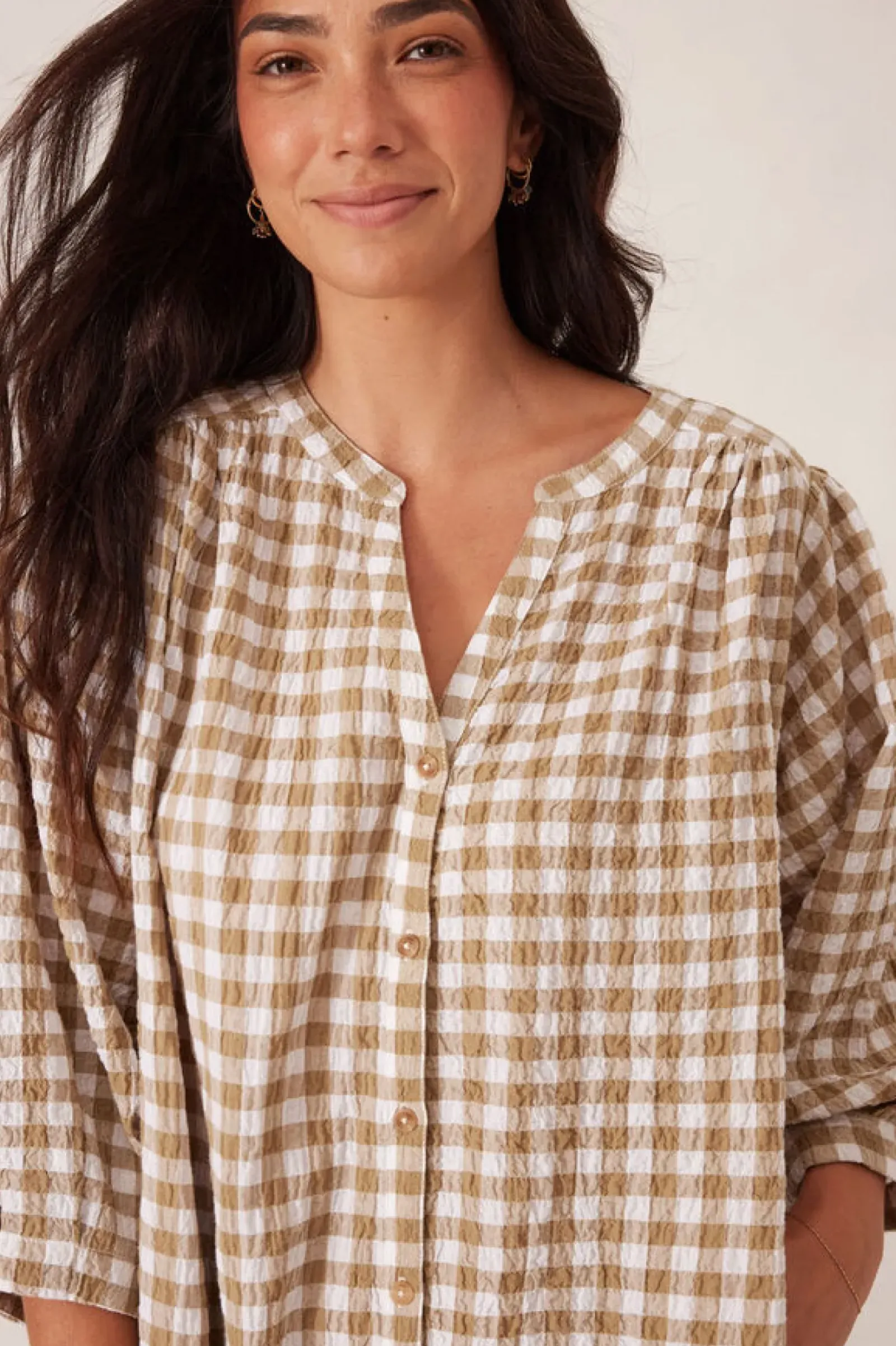 Women Ceres Life Crinkle Mini Dress – Fig Green/White Gingham