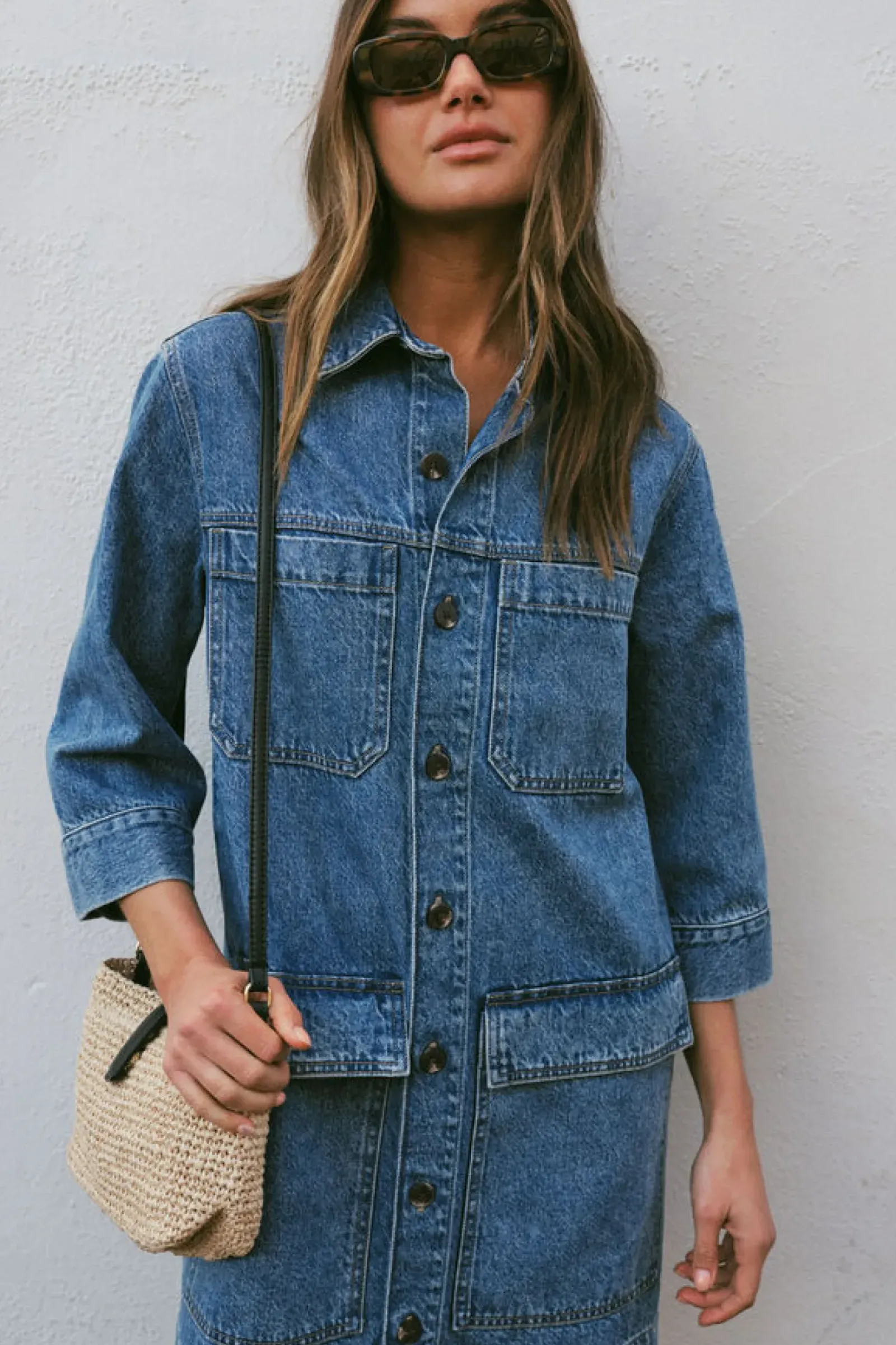 Women Ceres Life Half Sleeve Boxy Shirt Dress – Fresh Indigo Denim
