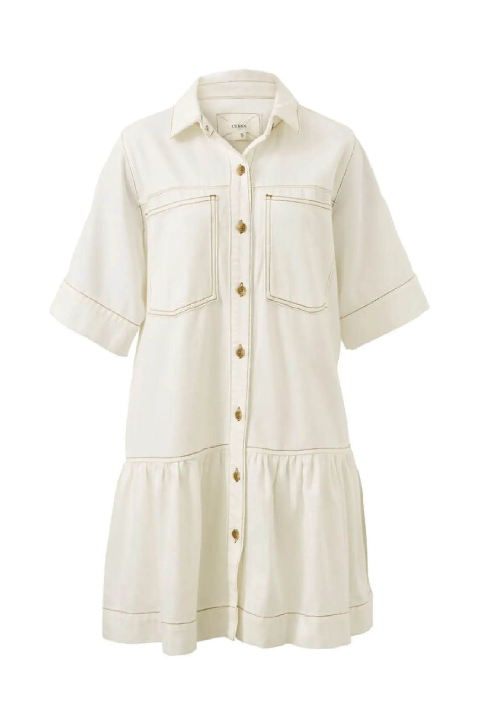 The Short Sleeve Tiered Pocket Shirt Dress is all about effortless charm. Made from midweight twill with 30% Tencel Lyocell with a soft hand feel, this mini-length dress features a functional button placket, a relaxed boxy fit, and a flattering gathered tier. Perfect for those days when you want to look cute with minimal effort!
