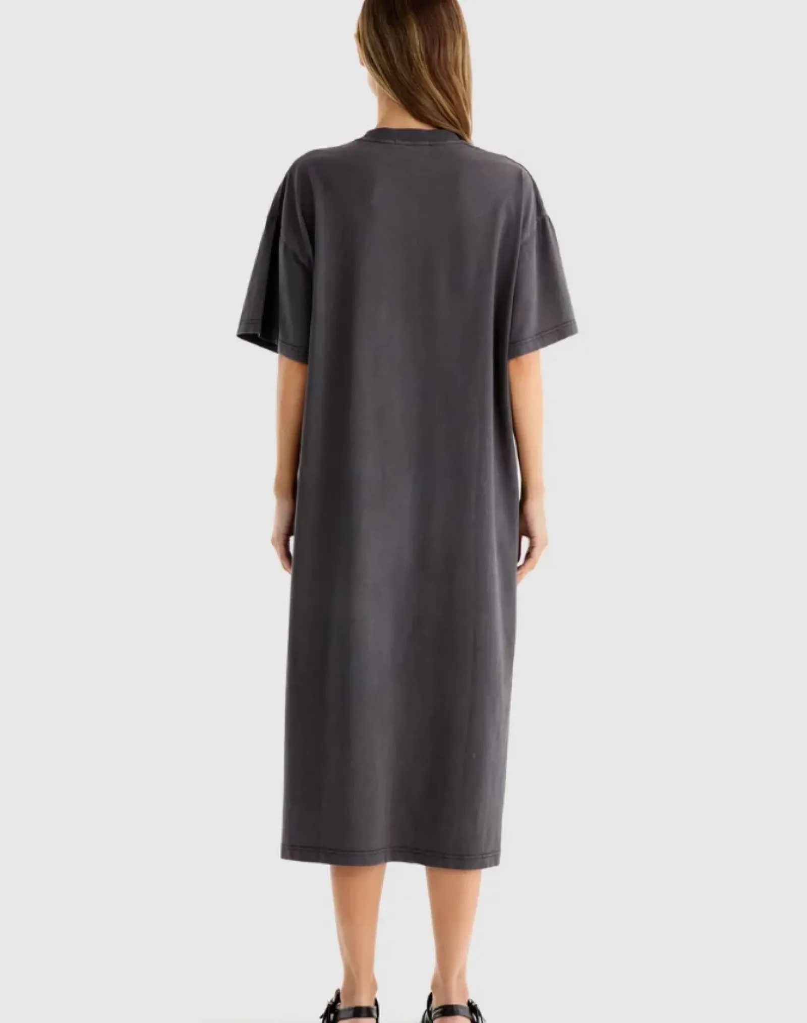 The World Tour Tee Dress in Faded Black is crafted from soft cotton jersey with an oversized fit and maxi length. Featuring exclusive in-house graphics and a special garment wash, no two pieces are the same. Style it with chunky boots for an edgy, streetwear vibe.