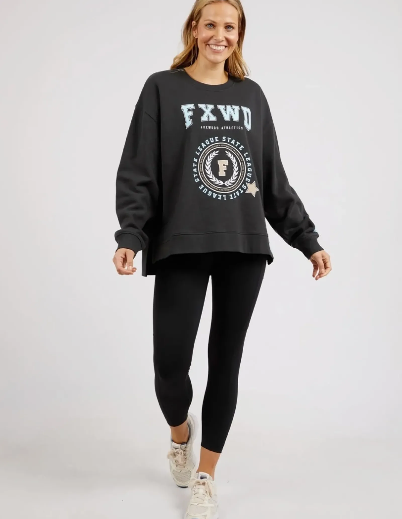 The perfect way to ‘Get There’ is in the LeisureFit Get There Crew. With its round neck, hi-lo hemline, side splits with raw edging & this relaxed fit collegiate style crew is a best seller for it’s stylish simplicity.