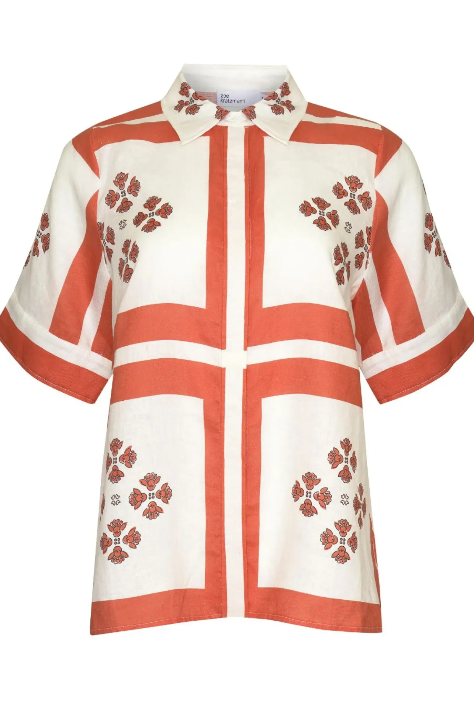 this simple and minimalistic design is the perfect vehicle for punchy on-point prints. a covered placket and classic collar are modern and contemporary features. the boxy silhouette allows these stunning prints to shine.